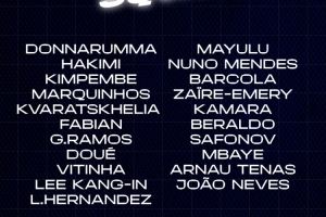 后卫:阿什拉夫、金彭贝、马尔基尼奥斯、卢卡斯-埃尔南德斯、努诺-门德斯、贝拉尔多、